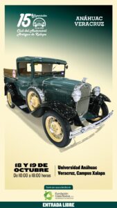 24.08.2025 Xalapa, Ver.- El Club del Automóvil Antiguo de Xalapa invita a asistir a la 15ª Exposición de Autos Antiguos 2025, que se llevará a cabo los días 18 y 19 de octubre en las instalaciones de la Universidad Anáhuac Veracruz Campus Xalapa, con la participación de más de 150 vehículos clásicos.