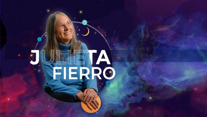 s la tarde número 158 sin Julieta Norma Fierro Gossman, aquí en uno de sus sitios favoritos, el Teatro Jorge Flores de Universum, Museo de las Ciencias. Están reunidos sus amigas y amigos de la comunidad científica para homenajearle por su aniversario 78. Son astrónomos, científicas, universitarios, ciudadanos y autoridades, todos la recuerdan.