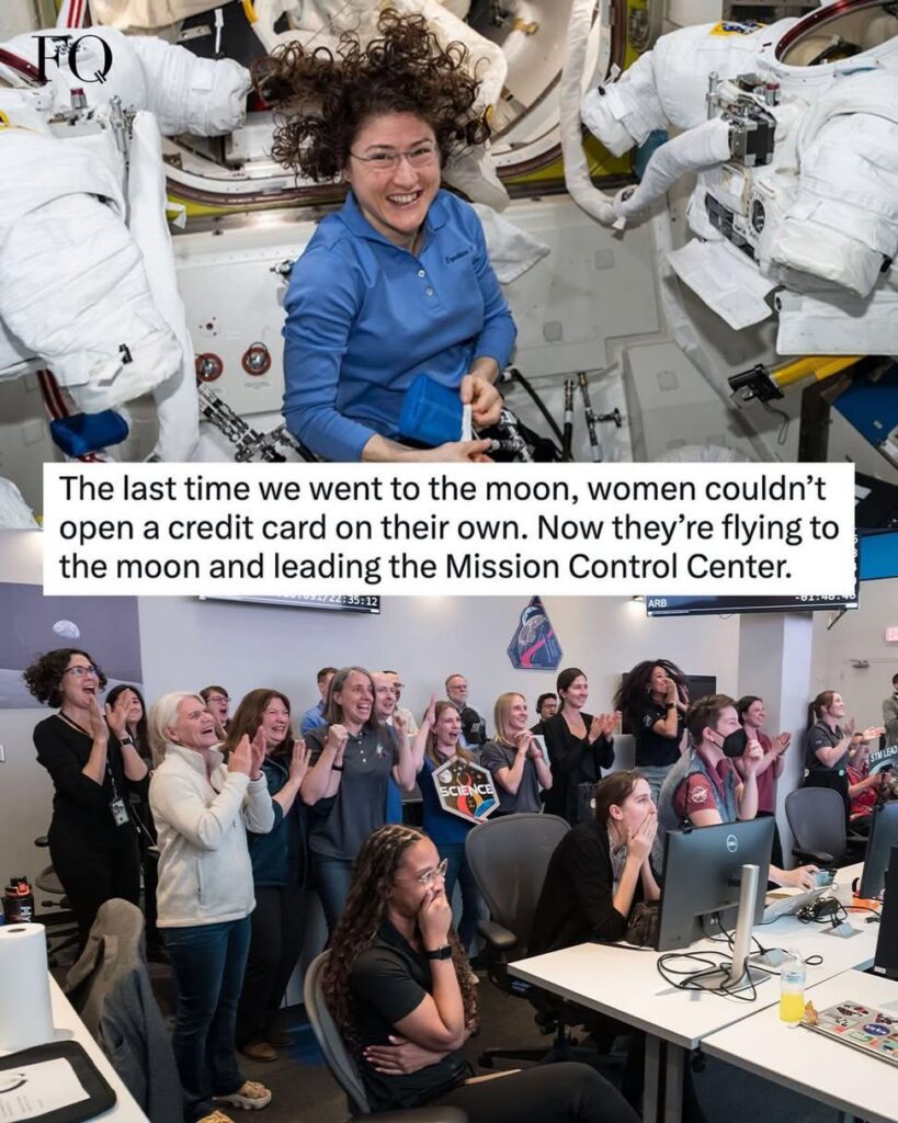 “La última vez que fuimos a la Luna, las mujeres no podían abrir una tarjeta de crédito por sí mismas. Ahora ellas vuelan a la Luna y dirigen el Centro de Control de Misión.”