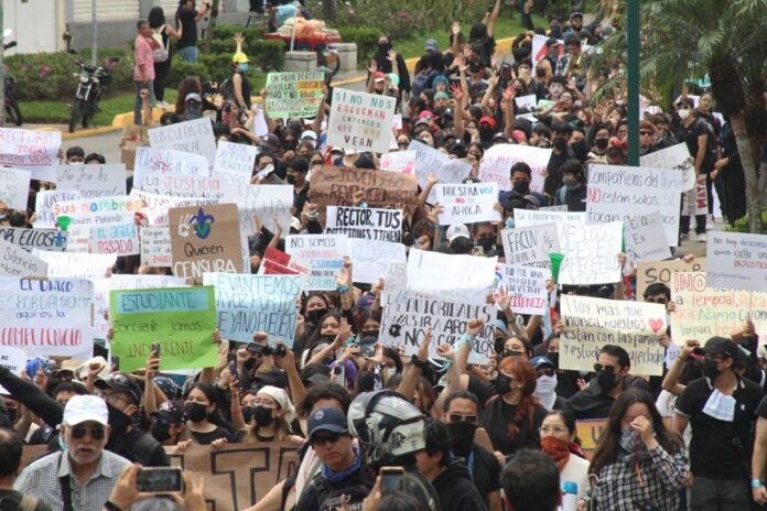 El pasado viernes se llevó a cabo una marcha convocada por los estudiantes de la Universidad Veracruzana, ante lo que califican como una irresponsabilidad de Gerardo Martín Aguilar el espurio, en el manejo de la tragedia ocasionada la semana antepasada por las inundaciones en el norte del estado, sobre todo en Poza Rica.
