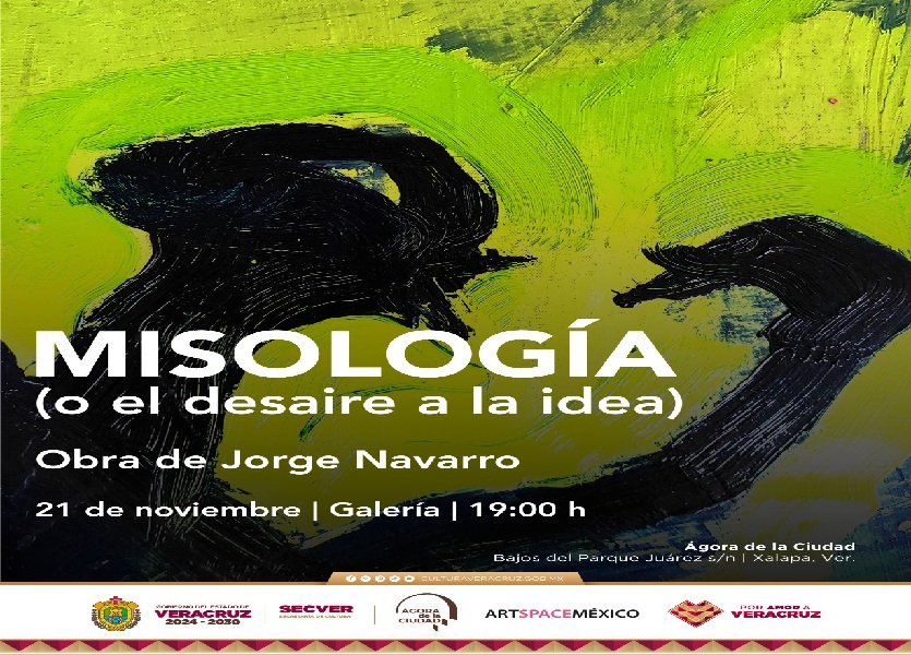 Xalapa, Ver., 18 de noviembre de 2025.- La Secretaría de Cultura de Veracruz (SECVER) invita a la inauguración de exposición Misología (o el desaire a la idea) de Jorge Navarro, que se llevará a cabo el viernes 21 del presente mes a las 19:00 horas, en la Galería del Ágora de la Ciudad.