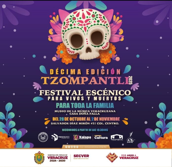 Xalapa, Ver., 29 de octubre de 2025.- La Secretaría de Cultura de Veracruz (SECVER) invita a la celebración del décimo aniversario del Festival Escénico Tzompantli, desde hoy y hasta el domingo 02 de noviembre a partir de las 18:30 horas.