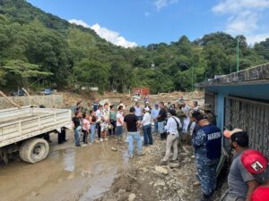 Durante su recorrido, dialogó con la población, autoridades municipales y cuerpos de auxilio, reiterando que el Gobierno de Veracruz trabaja de manera permanente para garantizar alimentos, atención médica y el restablecimiento de caminos.