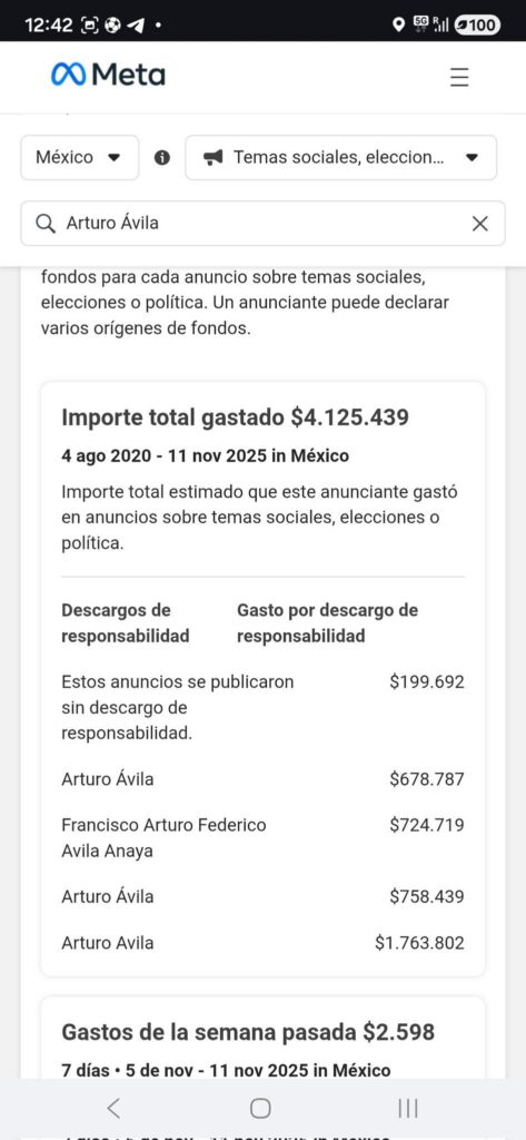 Las redes descubrieron que el ahora morenista Arturo avila habría destinado cerca de 4 millones de pesos en pagos a Facebook para impulsar sus temas políticos.