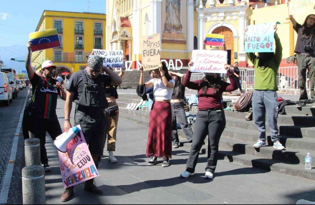 Por un lado, en la Plaza Lerdo, un grupo decolectivos realizaron una protesta para repudiar lo que calificaron como una invasión del gobierno de Estados Unidos a la República Bolivariana de Venezuela.