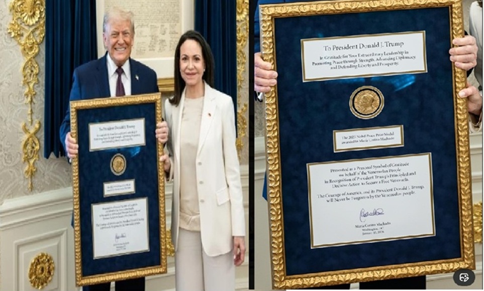 -“Le entregué al Presidente de los Estados Unidos la medalla… el Premio Nobel de la Paz.”, confirmó la venezolana.