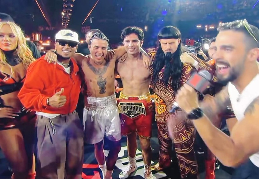 La Arena CDMX recibió a más de 20 mil asistentes, y el ambiente fue de espectáculo total. Mario Bautista entró en un carrito de golf cantando uno de sus éxitos, mientras Mercury apareció vestido de “azteca” con corona de plumas doradas, acompañado de Oliver Tree y con la bendición de su madre. Desde los primeros segundos, ambos intercambiaron golpes, pero Mercury fue más contundente y mandó dos veces a la lona al cantante antes de sellar la victoria. Ozuna fue el encargado de entregarle el cinturó