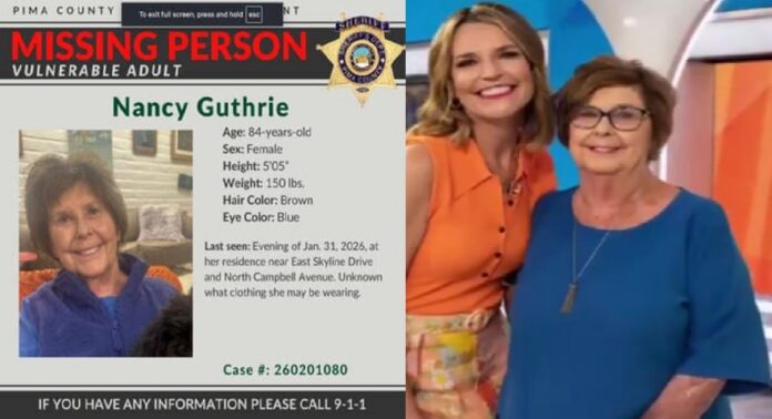 06.02.2026. Ciudad de México.- La desaparición de Nancy Guthrie, madre de la reconocida periodista estadounidense Savannah Guthrie, se ha convertido en uno de los episodios más inquietantes de los últimos años en Arizona. Con 84 años de edad, la mujer fue vista por última vez la noche del sábado 31 de enero, cuando ingresó a su vivienda en la zona de Catalina Foothills, al norte de Tucson. Apenas dos minutos después, una cámara registró el cierre del portón del garaje. Desde entonces, nada más se supo de ella.