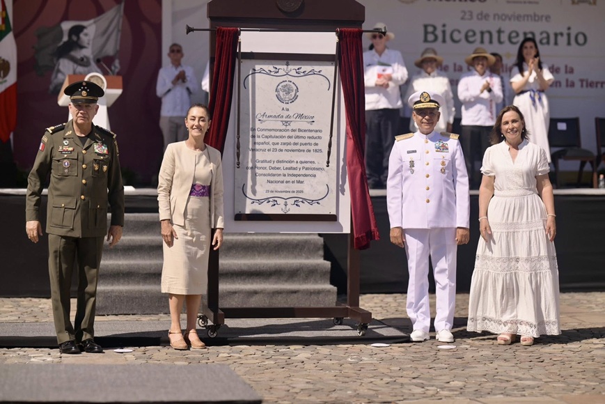 Desde el histórico Fuerte de San Juan de Ulúa, en Veracruz, la mandataria encabezó la ceremonia conmemorativa de los 200 años de la Independencia en la Mar, recordando la gesta de 1825 cuando la Armada mexicana expulsó a las últimas fuerzas españolas. “Es así que la historia nos muestra que no triunfa quien convoca a la violencia como instrumento de presión, o quien cree que unas cuantas personas callan la alegría de un pueblo”, expresó en un discurso marcado por la crítica a la oposición.