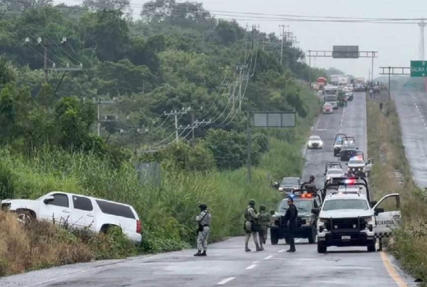 04.10.2025 Sayula de Alemán.-Elementos de Seguridad Pública, Guardia Nacional y del ejército lograron contener una agresión armada en uno de los corredores más conflictivos del sur de Veracruz, un tramo carretero que conecta los municipios de Acayucan y Sayula de Alemán.