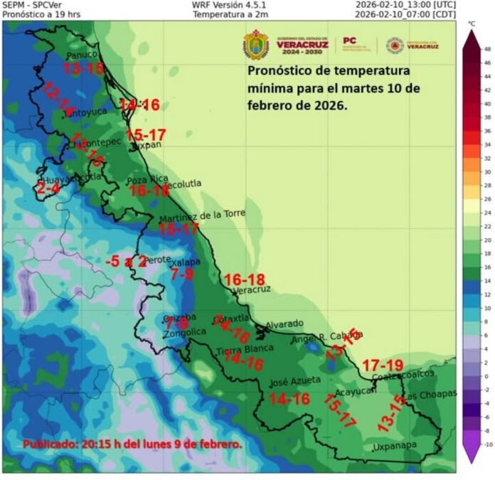 Previsión para las próximas dos semanas en el estado de Veracruz: se espera lluvia acumulada inferior al promedio, con ambiente no tan frío como lo normal.