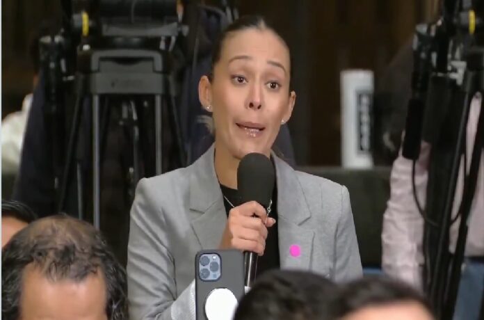 06.09.2025 Ciudad de México.- La periodista potosina Anahí Torres denunció ante la presidenta Claudia Sheinbaum Pardo haber sido víctima de un atentado el pasado 2 de octubre, tras publicar una serie de reportajes que documentan una presunta red de espionaje operada desde el gobierno de San Luis Potosí, encabezado por el gobernador Ricardo Gallardo Cardona.