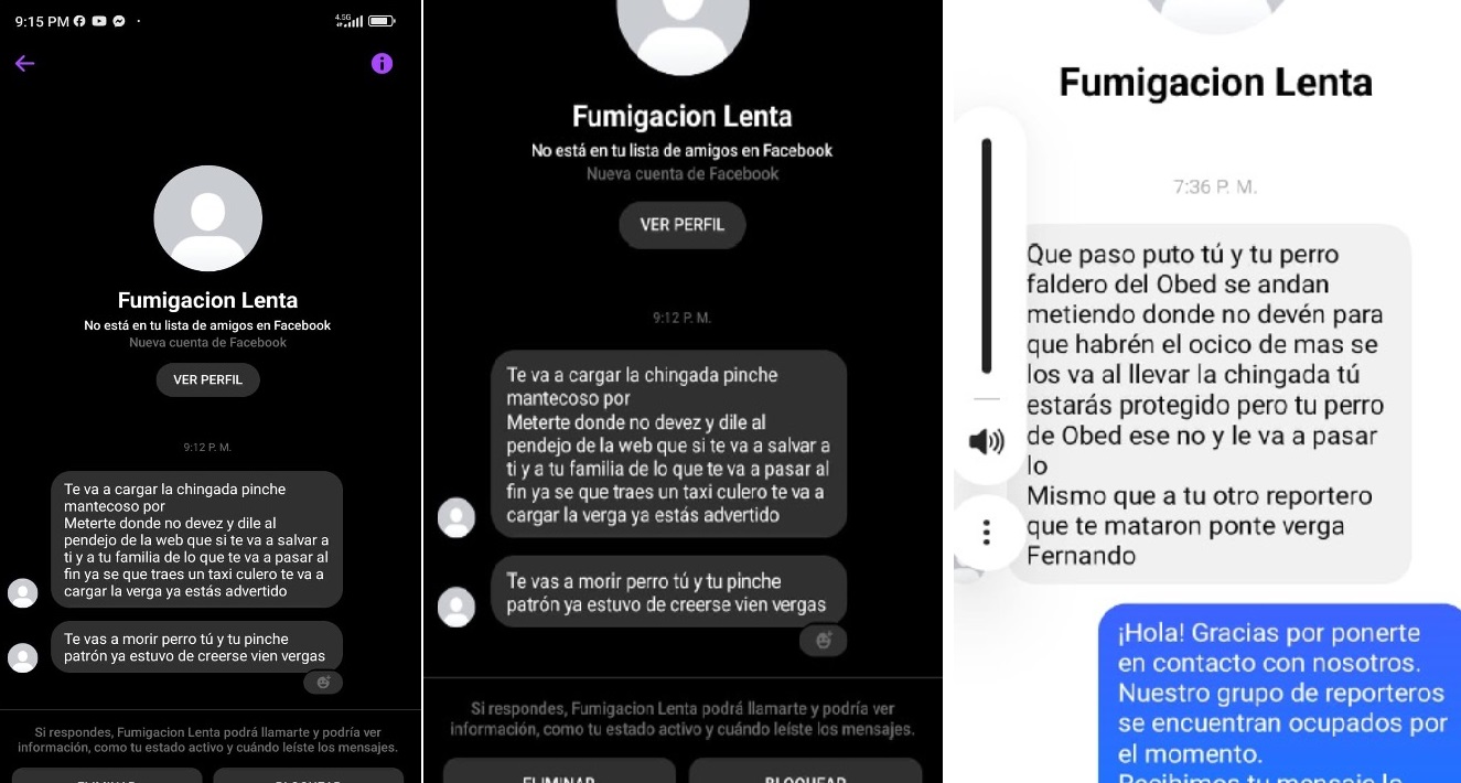En el caso de Fernando Rodríguez, los mensajes también se han dirigido a los vecinos del periodista, en donde les amenazan indicando que deben de dejar de relacionarse con el comunicador. Cabe destacar, que según lo verificado por ARTICLE 19 los perfiles ya no se encuentran disponibles. Según lo relatado por ambos periodistas, las cuentas han “desaparecido y se han reactivado en momentos específicos para volver a mandar comunicaciones”.