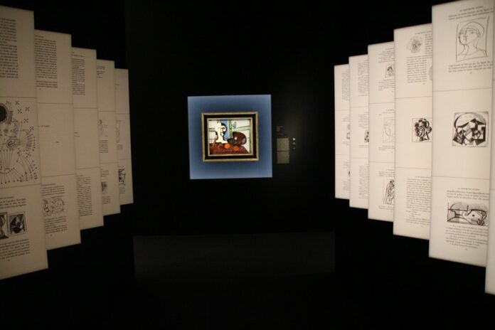 Asimismo, el comisario detalló la cuidada participación del barítono malagueño Carlos Álvarez. Su voz guía al visitante a través de un pasillo inmersivo donde se narran fragmentos de La obra maestra desconocida de Balzac, mientras se contemplan las célebres «constelaciones» y dibujos de los cuadernos 30 y 31 de Picasso; lo que permite al visitante tener una experiencia especial y sentirse arropado entre el texto y el audio. Una muy buena experiencia.