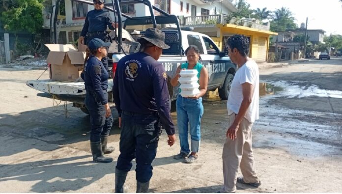 Poza Rica, Ver., 21 de octubre de 2025.- En las últimas 24 horas, a través del Plan Tajín de la Secretaría de Seguridad Pública (SSP), se han distribuido 2 mil 500 raciones de comida caliente y 621 paquetes alimentarios a familias damnificadas por la vaguada y la depresión tropical 90E en la zona norte del estado.