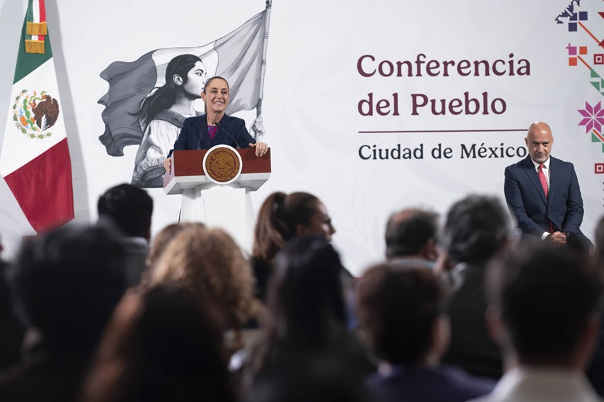 08.10.2025 Ciudad de México.- La presidenta Claudia Sheinbaum Pardo afirmó que el gobierno federal tendrá un buen cierre de año en materia de infraestructura carretera. Hasta el momento, el plan nacional registra 60 por ciento de avance con inversión de 17 mil millones de pesos a través de 70 frentes y seis mil trabajadores.