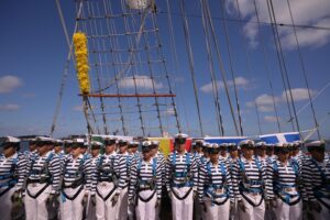 Veracruz, Ver., 23 de noviembre de 2025.- En el marco del Bicentenario de la Consolidación de la Independencia en la Mar, la gobernadora Rocío Nahle García y la presidenta Claudia Sheinbaum Pardo, encabezaron la visita oficial al Buque Escuela ARM Cuauhtémoc, en un acto solemne para reconocer el valor y la unidad de la comunidad naval.
