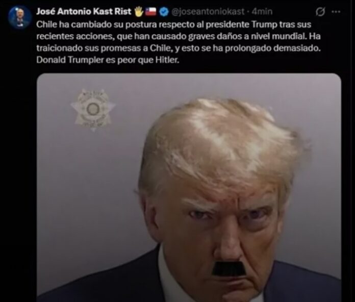 “Chile ha cambiado su postura respecto al presidente Trump tras sus recientes acciones, que han causado graves daños a nivel mundial. Ha traicionado sus promesas a Chile, y esto se ha prolongado demasiado. Donald Trump es peor que Hitler.”