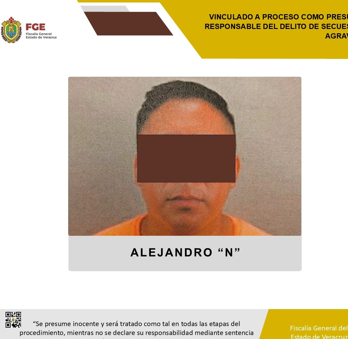 Xalapa, Ver., 28 de abril de 2026.- Como resultado de acciones de investigación, la Fiscalía General del Estado de Veracruz, a través de la Fiscalía de Investigaciones Ministeriales, reportó la vinculación a proceso otorgada por el órgano jurisdiccional en contra de Alejandro “N”, ex servidor público, señalado como presunto responsable del delito de secuestro agravado en Tierra Blanca, cometido en agravio de dos víctimas de origen hondureño, cuya identidad se encuentra legalmente resguardada.