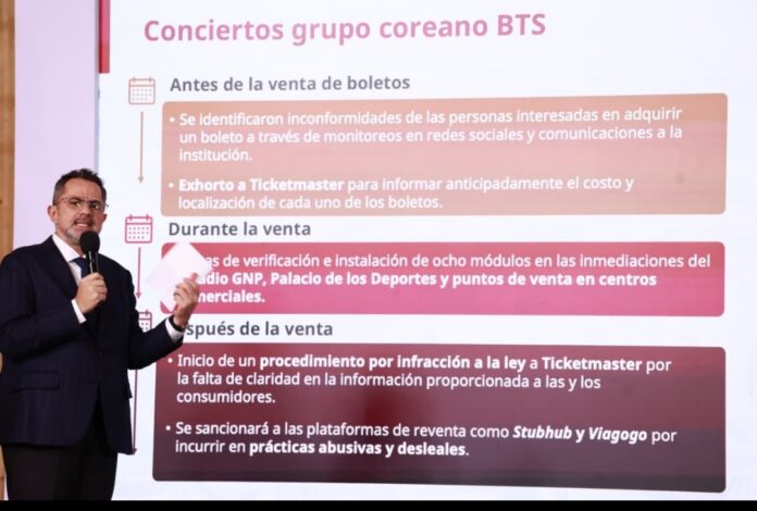 26.01.2026. Ciudad de Mexico.- La Procuraduría Federal del Consumidor (Profeco) confirmó este lunes que iniciará un procedimiento contra Ticketmaster debido a irregularidades detectadas en la venta de boletos para los próximos conciertos de la agrupación surcoreana BTS en México.