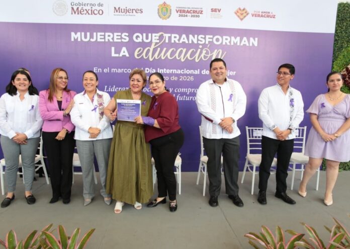 Xalapa, Ver., 10 de marzo de 2026.- La Secretaría de Educación de Veracruz (SEV) reconoció a 34 trabajadoras que han contribuido con su labor diaria al fortalecimiento del sistema educativo en la entidad, en beneficio de niñas, niños y jóvenes, en el marco del Día Internacional de la Mujer.