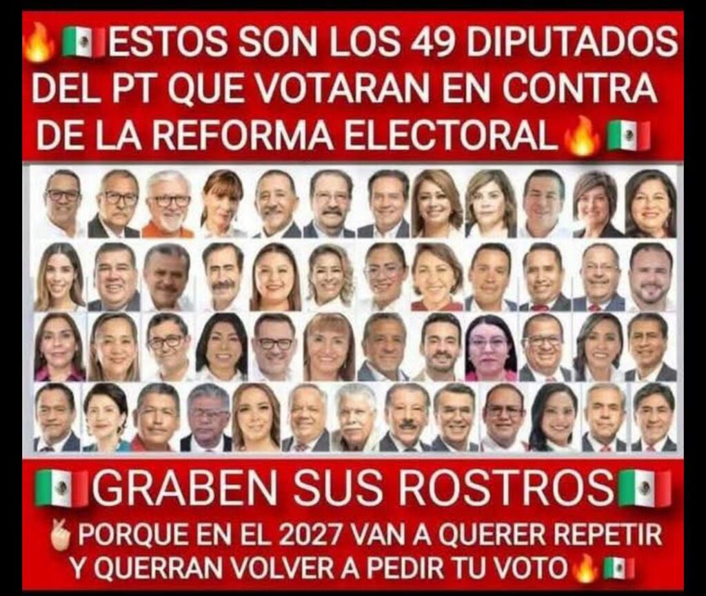En redes difundieron videos y memes con los rostros de los que al interior del movimiento de la 4t califican de traición a la Presidenta Claudia Sheinbaum.