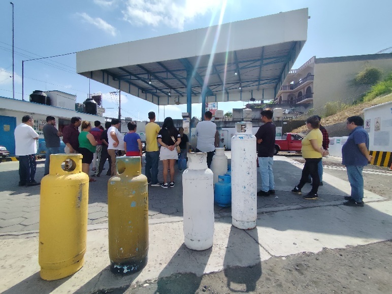 17.11.2025. Xalapa, Ver.- En pleno arranque de la temporada invernal, este lunes se registró un notable desabasto de gas LP en la capital veracruzana. En la colonia 21 de Marzo, usuarios formaron largas filas en la planta de una gasera para poder llenar sus tanques, ante la falta de servicio a domicilio por parte de las camionetas distribuidoras.