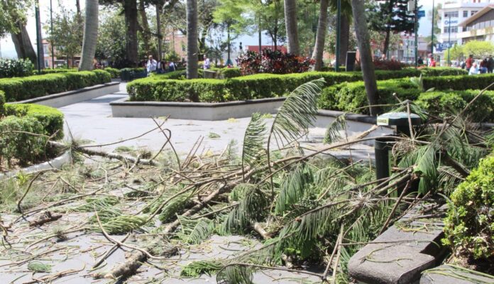 16.03.2026. Xalapa,Ver.-Las fuertes rachas de viento registradas la mañana y tarde de este lunes en la capital veracruzana provocaron la caída de árboles, desprendimiento de ramas, cables colgando y cortes en el suministro de energía eléctrica, sin que hasta el momento se reporten personas lesionadas.