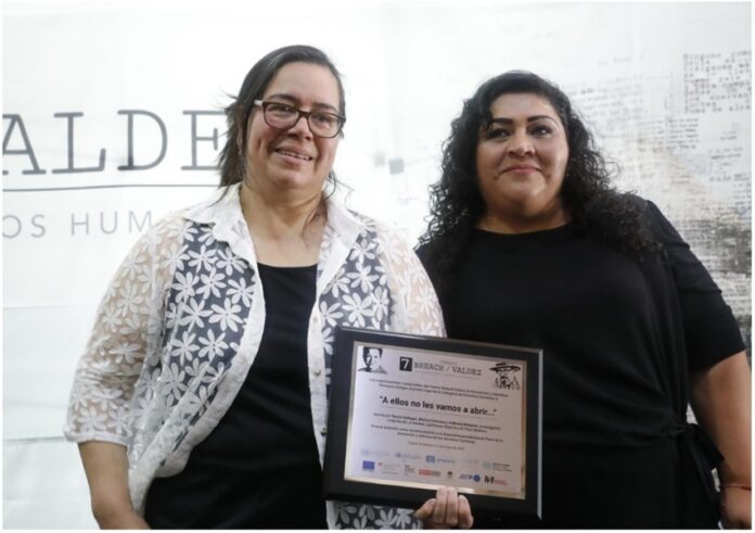 Las periodistas Rocío Gallegos, Blanca Carmona y Gabriela Minjares realizaron la investigación periodística “A ellos no les vamos a abrir…” publicada por La Verdad, Lighthouse Reports y El Paso Matters, y fueron merecedoras del primer lugar de la categoría derechos humanos del Premio Breach/Valdez de Periodismo y Derechos Humanos en su séptima edición.
