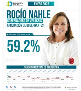 05.02.2026 .- El más reciente estudio de Demoscopia Digital coloca a la gobernadora de Veracruz, Rocío Nahle García, en el lugar número 12 del listado nacional de mandatarios estatales, con un ascenso de tres posiciones respecto a la medición anterior en el mes de noviembre .