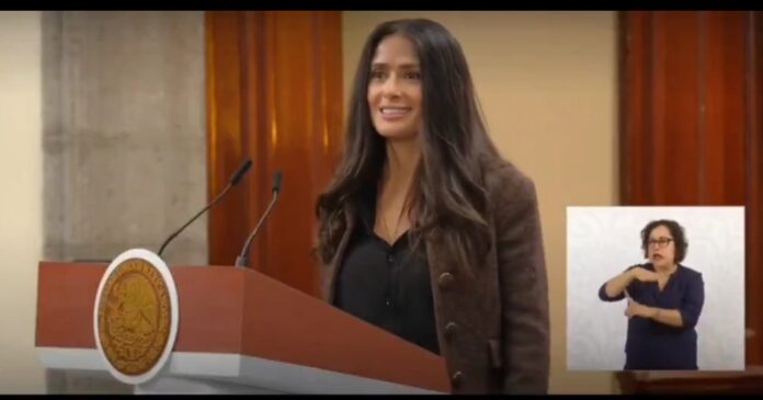 Durante su intervención Salma Hayek, centró su mensaje en reconocer el respaldo de la gobernadora de Veracruz, Rocío Nahle García, a las producciones que actualmente se desarrollan en la entidad.