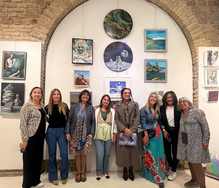 06.10.2025 Roma, Italia .- Ni la huelga general que se implantó en Roma fue impedimento para que se exhibieran los trabajos de treinta artista, españoles e internacionales liderados por Sun Art que dirige Alejandra y Alicia Natale. “Senza Confini – Roma, 2025 Sin fronteras” es la exposición que se presenta en la Galleria Arca di Noesis Coloseo, situada cerca del Coliseo de Roma. Fue visitada por gestores culturales, propietarios de galerías, y recibió artistas malagueños que viajaron para sumarse a este evento cultural.