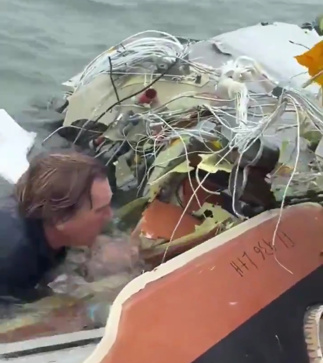 El rescate fue arduo. El pescador tuvo que apartar piezas del fuselaje y luchar contra la corriente para mantener a flote a la sobreviviente que se mantenía viva respirando en una bolsa de aire en el techo del desteozado avión.
