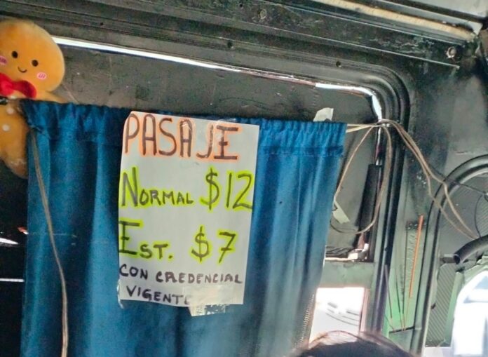 Desde ayer, en algunas unidades del servicio urbano fueron colocados letreros improvisados en los que se informaba a los pasajeros que a partir de hoy el pasaje tendría un aumento, quedando en 12 pesos para la tarifa general y 7 pesos para la preferencial.