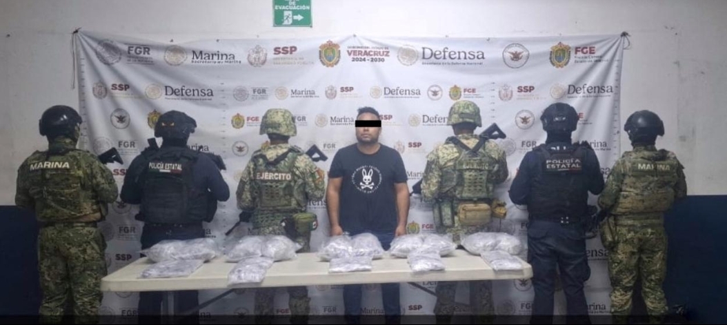 En Tierra Blanca, en coordinación con las secretarías de Marina y Defensa Nacional, se detuvo a una persona y aseguraron dos mil 500 dosis de presunto cristal, mil dosis de presunta marihuana y cinco vehículos sin reporte de robo; cuatro de ellos estarían presuntamente vinculados con hechos delictivos en la zona.