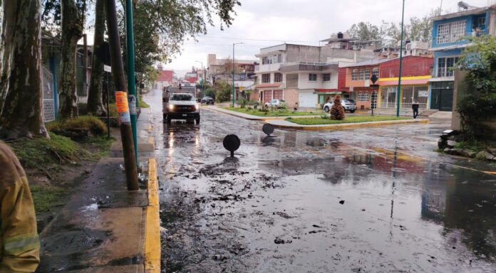 Asimismo, un vehículo Volkswagen resultó afectado por acumulación de agua en la colonia Obrero Campesina, aunque no se registraron mayores consecuencias.