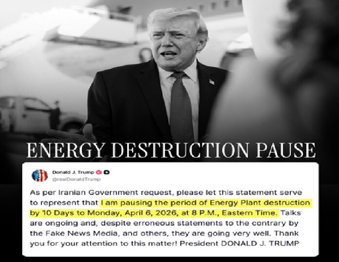 “A petición del Gobierno iraní, por favor, que esta declaración sirva para indicar que suspendo el período de destrucción de la planta de energía por 10 días, hasta el lunes 6 de abril de 2026 a las 8 p. m., hora del este. Las conversaciones continúan y, a pesar de las declaraciones erróneas en sentido contrario de los medios de comunicación que difunden noticias falsas y otros, están progresando muy bien”, escribió.