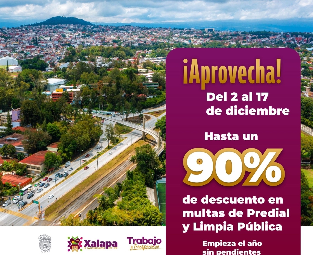 12.12.2025 Xalapa, Ver.- El próximo miércoles 17 de diciembre vence el plazo para participar en el programa de descuentos de hasta 90 por ciento en multas del Predial y Limpia Pública, por lo que se invita a la ciudadanía a acudir a la Tesorería Municipal, regularizar su situación e iniciar el año sin adeudos.