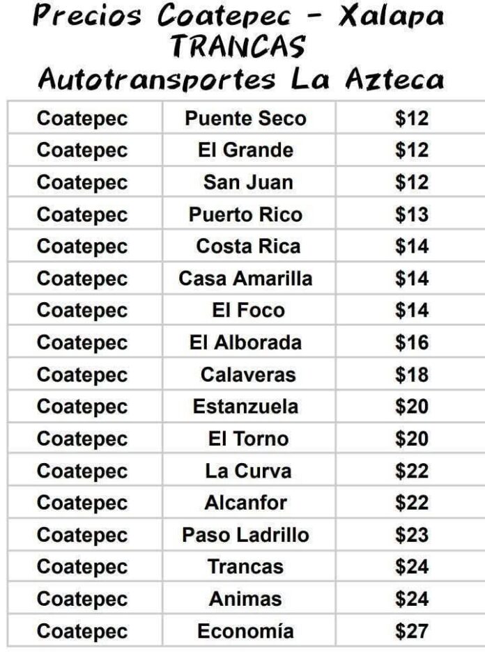27.01.2026. Xalapa,Ver.- – Usuarios de la línea Autotransportes La Azteca (ATAZ) manifestaron su inconformidad tras el anuncio del incremento en las tarifas de la ruta Coatepec–Xalapa–Las Trancas, modificación que fue dada a conocer a través de las redes sociales de la empresa.