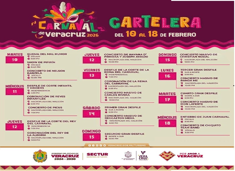 Xalapa, Ver., 10 de febrero de 2026.- Veracruz se prepara para celebrar una de sus tradiciones más emblemáticas: el Carnaval de Veracruz, reconocido a nivel nacional e internacional como el más alegre del mundo, al reflejar el espíritu festivo, la historia y la identidad cultural de los jarochos.