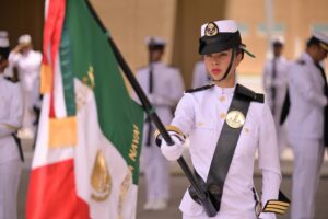 Como parte de la ceremonia, la Comandanta Suprema de las Fuerzas Armadas tomó protesta a 419 cadetes de la Heroica Escuela Naval Militar, la Escuela Médico Naval y la Escuela de Enfermería Naval, quienes juraron bandera. Asimismo, dio lectura a la lista de honor de los cadetes de la Heroica Escuela Naval Militar y del Heroico Colegio Militar, evocando a José Azueta, Virgilio Uribe y a los Niños Héroes, quienes ofrendaron su vida en la defensa de la patria.