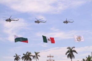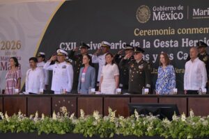 Acompañada por el secretario de Marina, Raymundo Pedro Morales Ángeles, la titular del Ejecutivo Federal destacó a la entidad como bastión histórico de la defensa nacional y símbolo de la resistencia del pueblo mexicano; recordó que esta fecha rememora la gesta del 21 de abril de 1914, cuando cadetes, marinos y el pueblo veracruzano enfrentaron la invasión estadounidense.