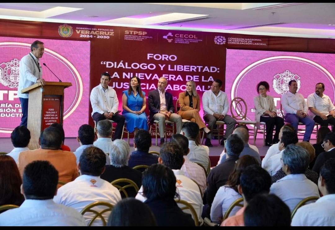 Xalapa, Ver., 10 de diciembre de 2025.- La Secretaría de Trabajo, Previsión Social y Productividad (STPSP), a través del Centro de Conciliación Laboral del Estado de Veracruz, realizó el foro Diálogo y Libertad: La nueva era de la justicia laboral, y llevó a cabo la 4ª sesión ordinaria de la Comisión Nacional de Centros de Conciliación Laboral (CONACENTROS).
