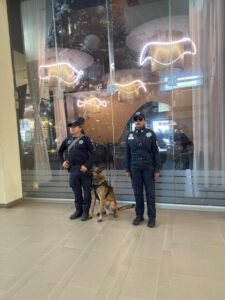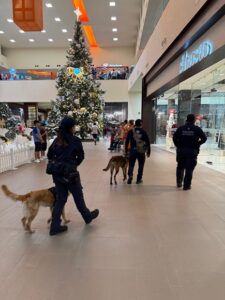 Como se informó previamente, los patrullajes se realizan tanto en unidades como a pie, fortalecidos con el apoyo de binomios caninos y equinos especializados para tareas de proximidad y prevención del delito en áreas de mayor concurrencia.
