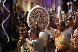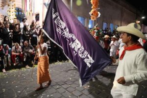 Oscar Gómez Tascalteco, integrante de la Cuadrilla de Payasos Mazahuanes de Xico, expresó su orgullo por representar a Veracruz en esta celebración nacional, “me siento alegre y afortunado de mostrar nuestras costumbres y tradiciones. Nosotros bailamos para honrar a las imágenes religiosas, y esta participación es también un homenaje a nuestros fieles difuntos”.