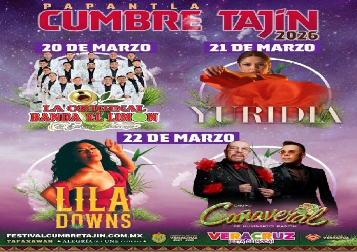 Xalapa, Ver., 26 de febrero de 2026.- La espera terminó, la gobernadora Rocío Nahle García anunció la cartelera oficial de Cumbre Tajín 2026, del 20 al 22 de marzo en el majestuoso municipio de Papantla, corazón del pueblo totonaco y símbolo vivo de raíces ancestrales.