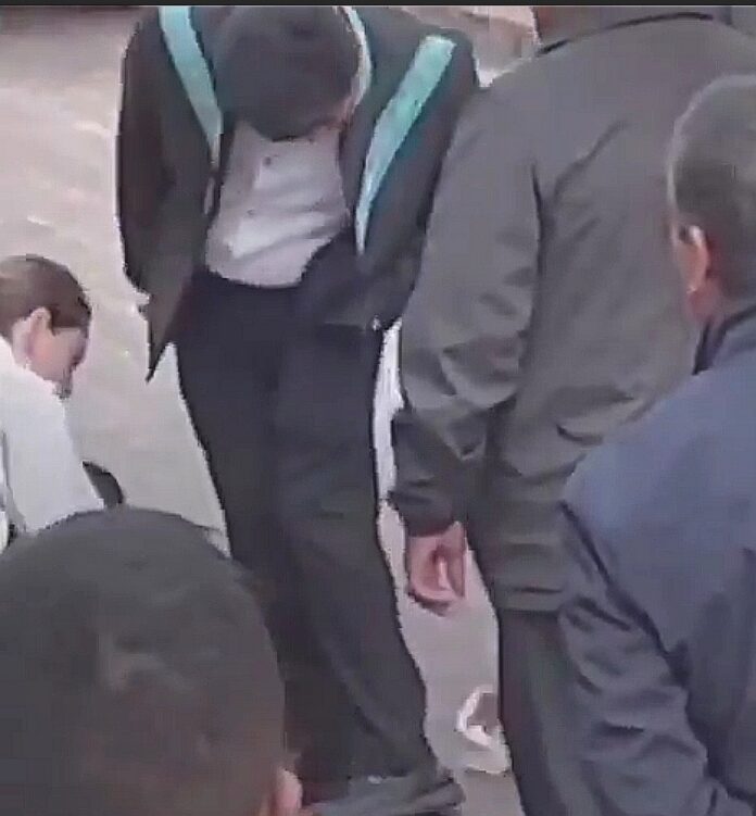*Los ayudantes del ministro del pueblo le limpian los zapatos en la calle