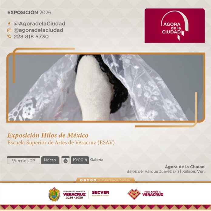 Xalapa, Ver., 27 de marzo de 2026.- La Secretaría de Cultura de Veracruz (SECVER) invita a la inauguración de la exposición Hilos de México, de Víctor Miguel Hernández Aburto, este viernes 27 de marzo, en el Ágora de la Ciudad, cuya entrada es libre.