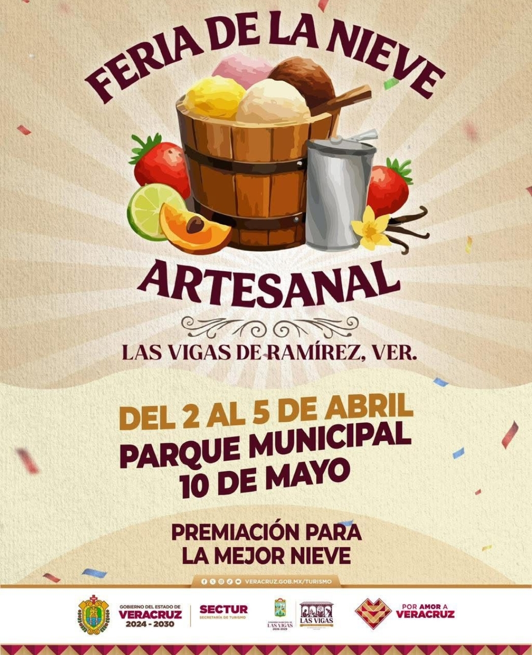 Xalapa, Ver., 31 de marzo de 2026.– En esta Semana Santa, la Secretaría de Turismo (SECTUR) invita a disfrutar de la Feria de la Nieve Artesanal, del 02 al 05 de abril, en el Parque Municipal 10 de Mayo, del municipio de Las Vigas, una atractiva opción en la región Cultura y Aventura.