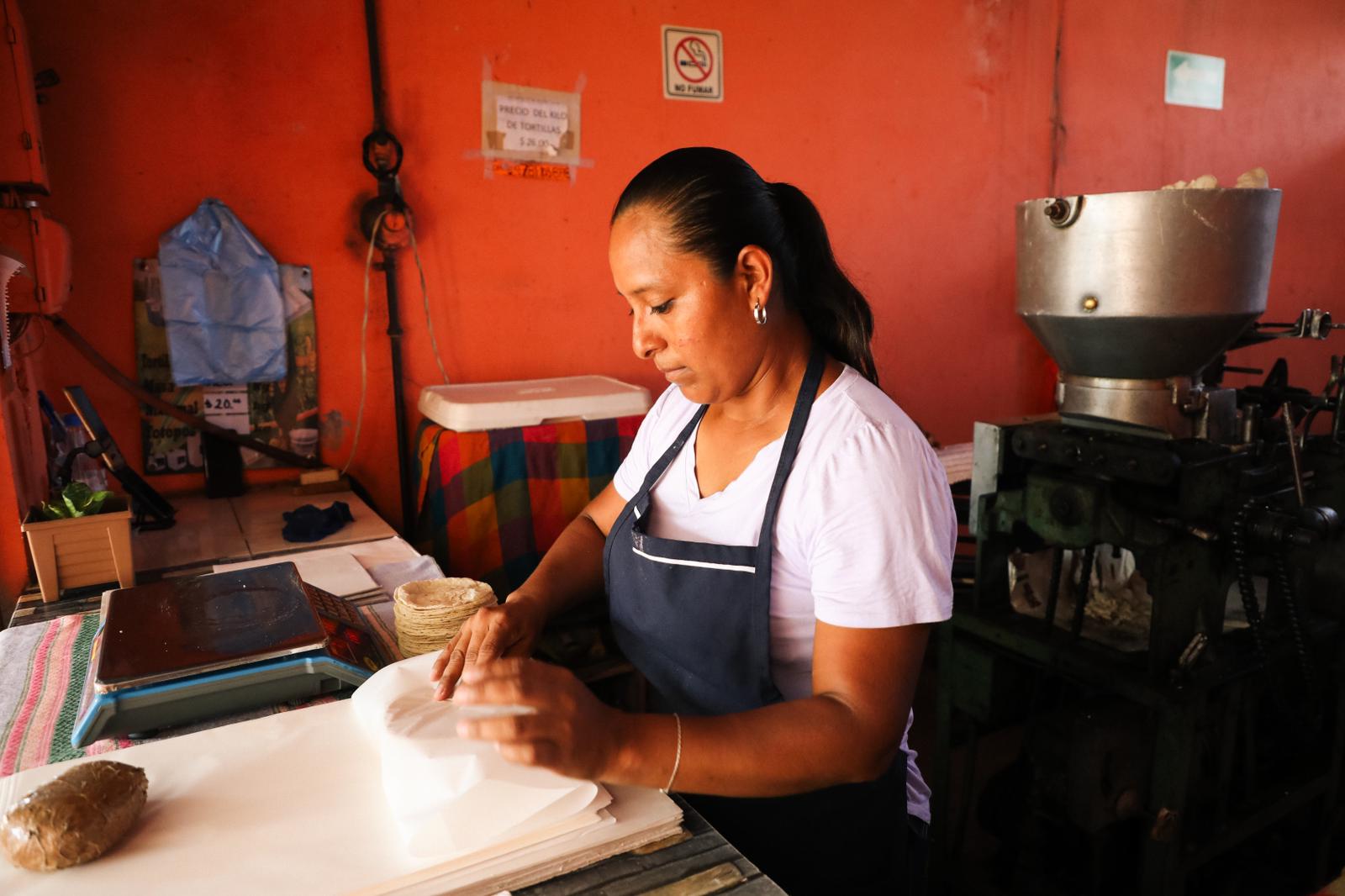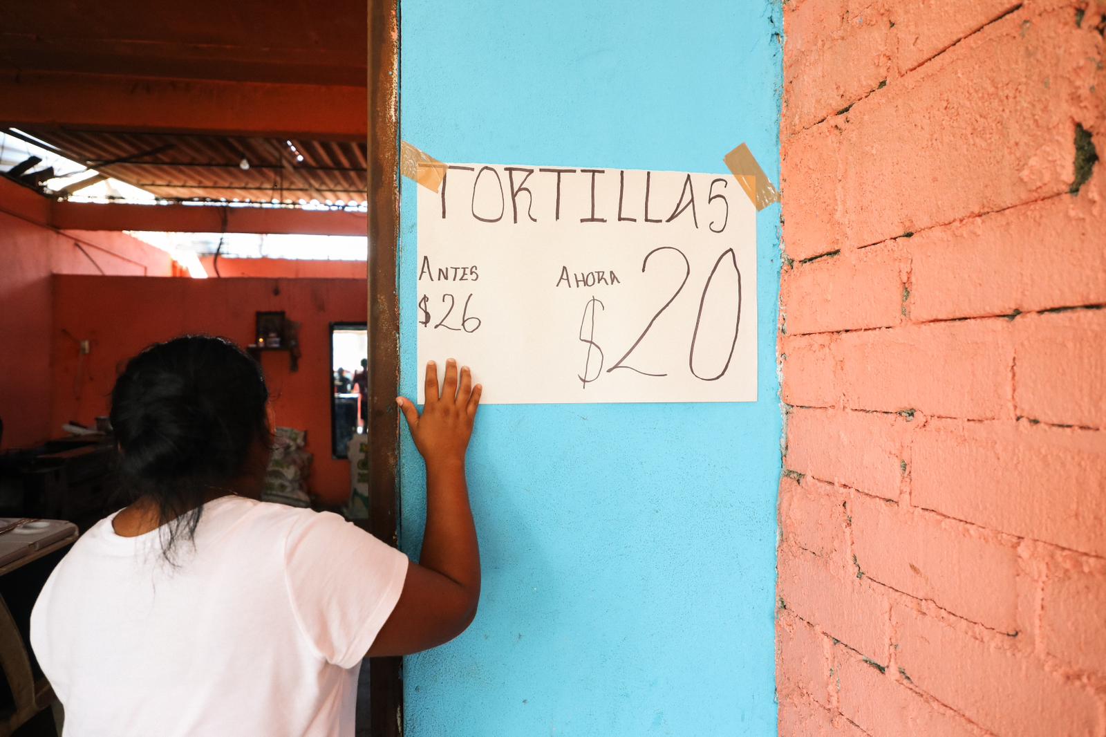 WCK comenzó a comprar miles de libras de harina de maíz y a trabajar para crear asociaciones con tortillerías locales en todo el estado de Guerrero. En El Espinalillo, Sandra y Olivia acordaron trabajar con WCK: recibieron la harina de maíz que necesitaban para hacer tortillas y, al mismo tiempo, se comprometieron a ofrecer precios específicos y razonables para las tortillas terminadas. Este programa ayuda a las tiendas locales a seguir elaborando tortillas para sus comunidades, fortaleciendo la economía local y garantizando que las familias que necesitan tortillas las obtengan a un precio asequible. A través de asociaciones como esta, garantizamos que las comunidades estén protegidas de la fuerte inflación que normalmente se observa después de un desastre.